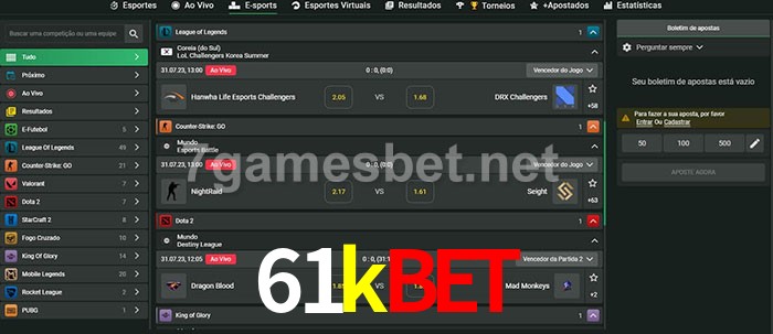 O 61kbet oferece uma grande seleção de opções de apostas em e-sports com probabilidades competitivas